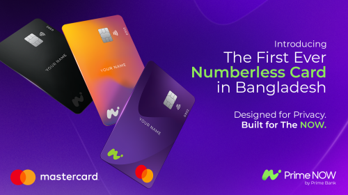 মাস্টারকার্ড ও প্রাইম ব্যাংকের ‘প্রাইম নাও’ চালু করলো দেশের প্রথম নম্বরবিহীন ডেবিট কার্ড