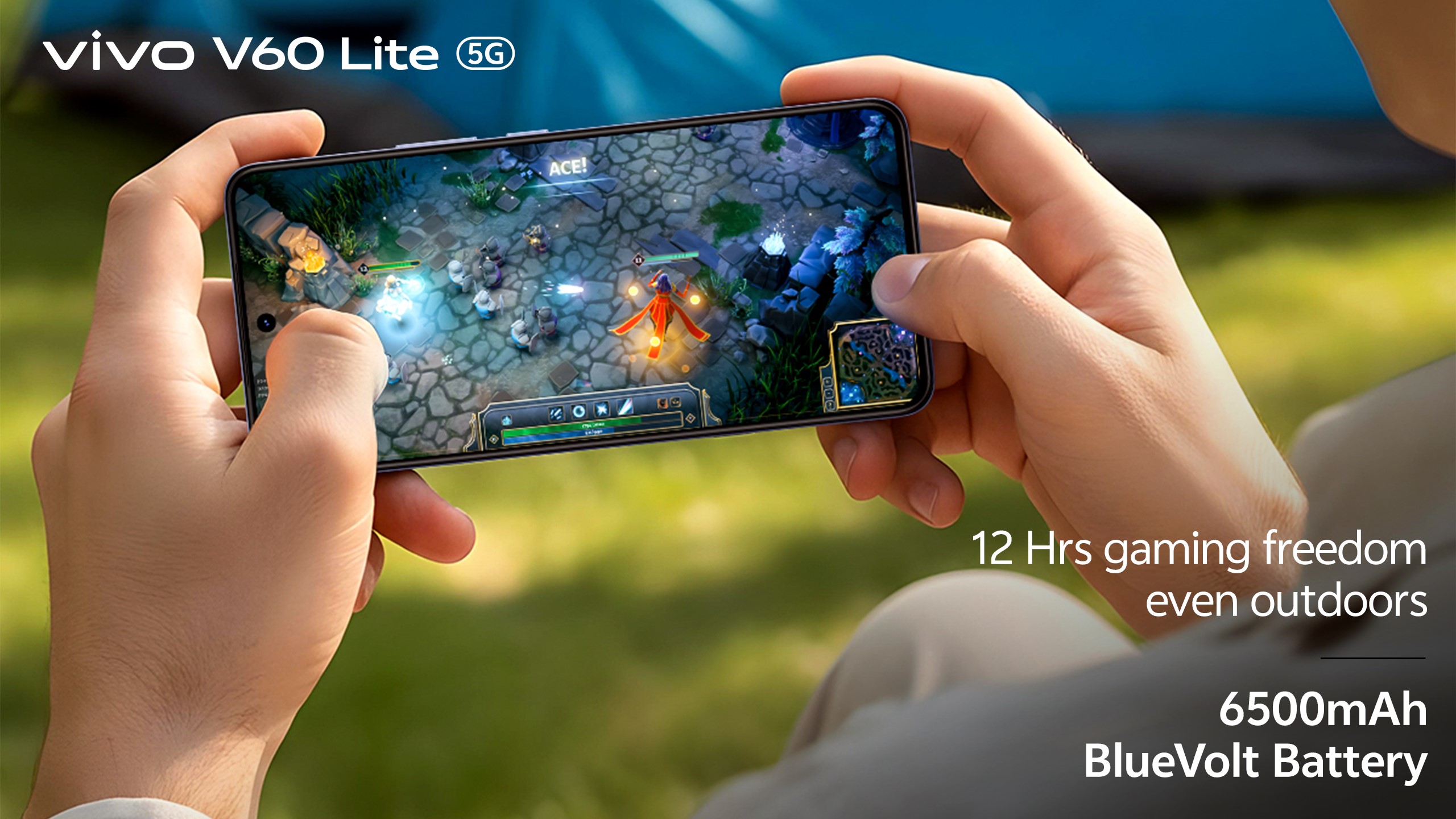 তবে, গেমে স্পিড আর স্কিলের সাথে প্রয়োজন একটি লং লাস্টিং ব্যাটারি। মাত্র ৭.৫৯ মি.মি. ডিজাইনের আল্ট্রা স্লিম এই ফোনে আছে ৬৫০০ মিলিঅ্যাম্পিয়ার এর শক্তিশালী ব্লুভোল্ট ব্যাটারি। টানা ১৬ ঘন্টা স্ট্রিমিং, গেমিং ও চ্যাটিং নির্বিঘ্নে করা যাবে ভি৬০ লাইট দিয়ে। আর একটানা ১২ ঘন্টা খেলা যাবে পাবজি। তবে আকর্ষণের ব্যাপার হলো বাইপাস চার্জিং সুবিধা থাকায় ফোনের ব্যাটারি এড়িয়ে সরাসরি চার্জার থেকেই চলবে ফোন। এতে করে ব্যাটারি অতিরিক্ত গরম হওয়া থেকে বাঁচবে। আর চার্জার সংযোগ করেই গেমিং করা যাবে লম্বা সময় ধরে। ফোনটিতে ৫ বছরের ব্যাটারি হেলথ-এর নিশ্চয়তা দিচ্ছে ভিভো।