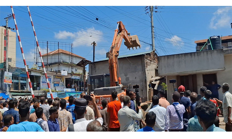 জয়পুরহাটে রেলওয়ের জমিতে গড়ে ওঠা অবৈধ স্থাপনা উচ্ছেদে অভিযান