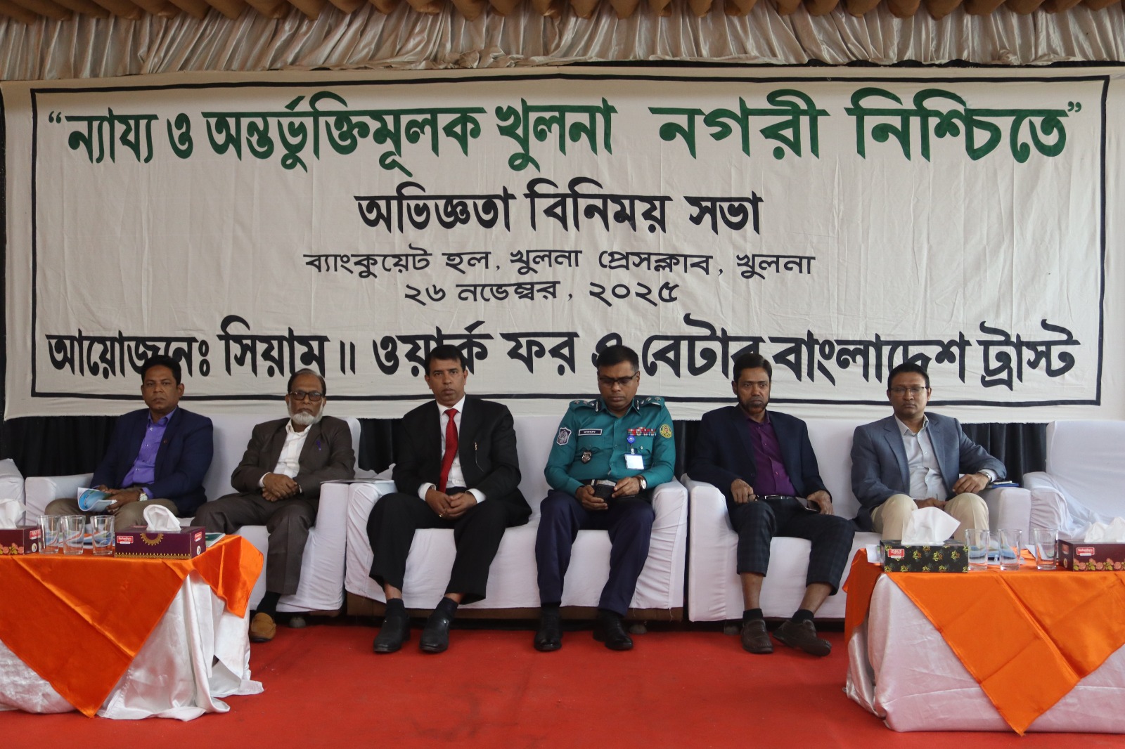 বৃহস্পতিবার খুলনা প্রেসক্লাবের ব্যাংকুয়েট হলে সিয়াম এবং ওয়ার্ক ফর এ বেটার বাংলাদেশ ট্রাস্টের যৌথ আয়োজনে এ সভা অনুষ্ঠিত হয়। অনুষ্ঠানে বক্তারা বলেন, খুলনা দেশের তৃতীয় বৃহত্তম নগর হলেও দ্রুত নগরায়ন, জলবায়ু বিপর্যয়, কর্মসংস্থানের সংকট, অসম ও অপরিকল্পিত উন্নয়ন নগরটিকে নানামুখী চ্যালেঞ্জের মুখে ফেলেছে। বিশেষ করে পদ্মা সেতুর উদ্বোধনের পর নগরটির অর্থনৈতিক কর্মকাণ্ডের বিস্তার ঘটলেও সামাজিক বৈষম্য ও মৌলিক সেবার ঘাটতি দূর হয়নি। বন্যা, লবণাক্ততা ও ঘূর্ণিঝড়ের মতো জলবায়ুজনিত দুর্যোগ এবং উপকূলীয় অঞ্চল থেকে অভিবাসীদের আগমন নগরের উপর বাড়তি চাপ সৃষ্টি করেছে। নিম্ন আয়ের মানুষ ও বস্তিবাসীদের জন্য নিরাপদ পানি, স্বাস্থ্য সেবা ও পয়ঃনিষ্কাশনের মতো মৌলিক সুবিধা এখনো অধরা রয়ে গেছে, ফলে ন্যায্যতা ও অন্তর্ভুক্তিমূলক উন্নয়নের দাবি আরও জোরালো হয়েছে।