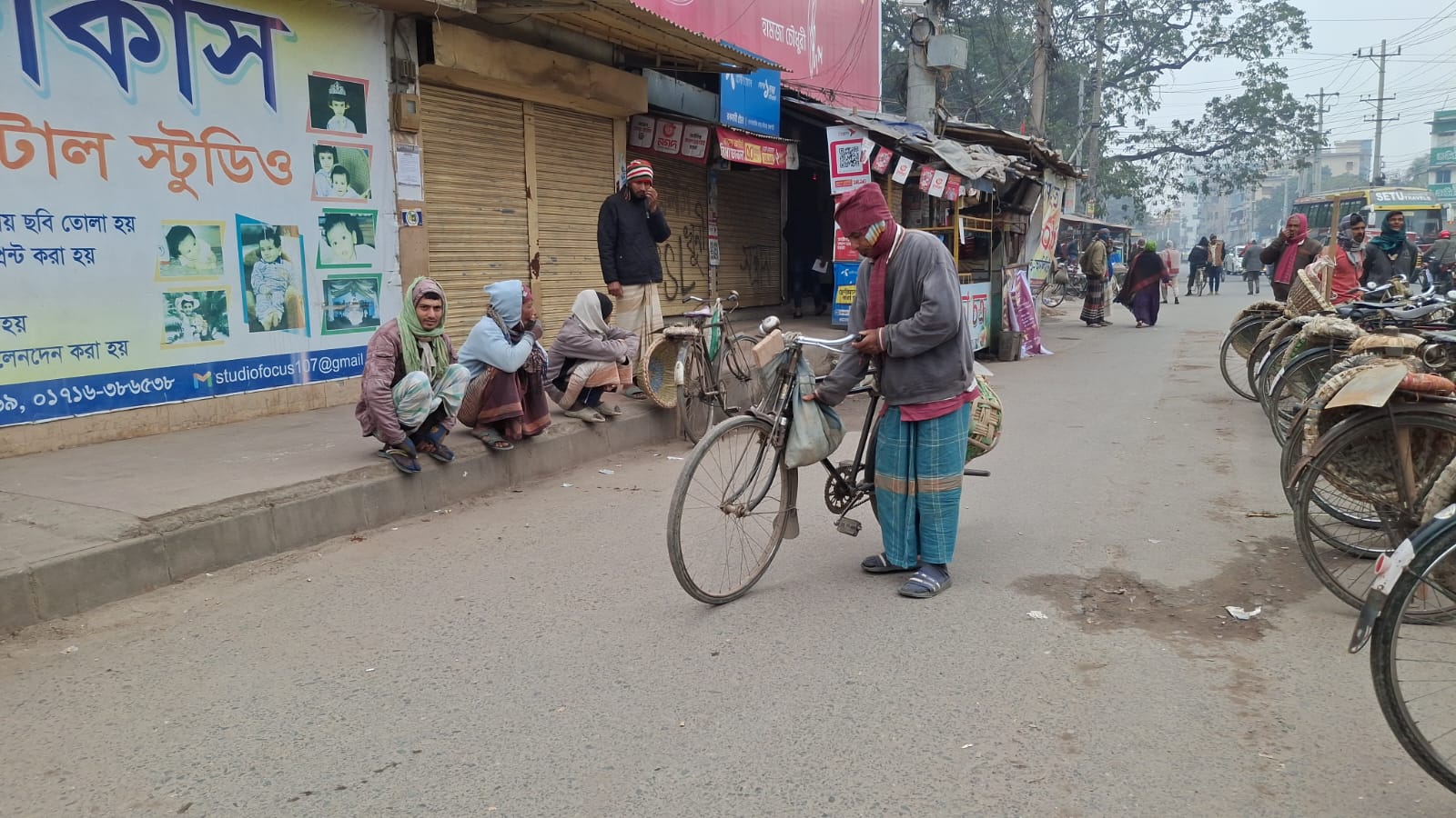 ভোরের রাজশাহী ছিল ধূসর কুয়াশায় মোড়া। রাস্তার বাতির আলো কুয়াশার আবরণ ভেদ করে ম্লানভাবে ছড়িয়ে পড়ছে। রিকশাচালকেরা মাথায় মাফলার ও শরীরে চাদর জড়িয়ে কাঁপতে কাঁপতে যাত্রী খুঁজছেন। চায়ের দোকানের পাশে টিনের ড্রামে জ্বালানো আগুনে গা গরম করছেন শ্রমজীবী মানুষ।