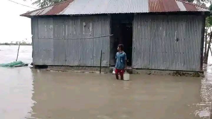 একই গ্রামের বাসিন্দা আছিয়া বেগম বলেন, নদীর জন্য সারারাত ভয়ে কাটিয়ে দিয়েছি। এখন কিছুটা পানি কমলেও ভয় তো কাঠছেই না। আবার কখন জানি আঘাত হানে। ছেলেমেয়েগুলোর খাবারটুকুও শুকনো নেই। রাতেই হাঁটু পানি ডিঙিয়ে কিছু জিনিসপত্র নিয়ে স্কুলে গেছি।