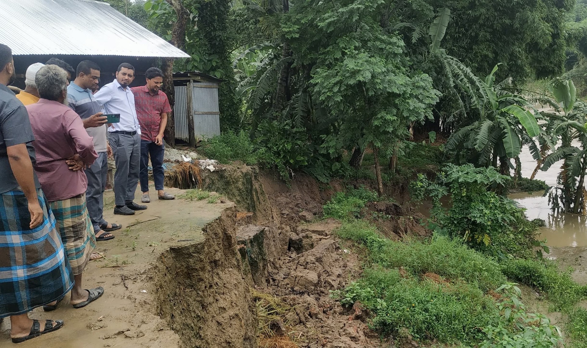 বিশেষ করে পৌরসভার চরপাড়া এলাকায় নদীভাঙনের ভয়াবহ চিত্র চোখে পড়েছে। স্থানীয়দের ভাষ্যমতে, প্রতিদিনই খালের পাড় গড়াগড়ি খেয়ে ধসে পড়ছে। রাস্তা ও গাছপালা পানিতে ভেঙে পড়ছে চোখের সামনেই।