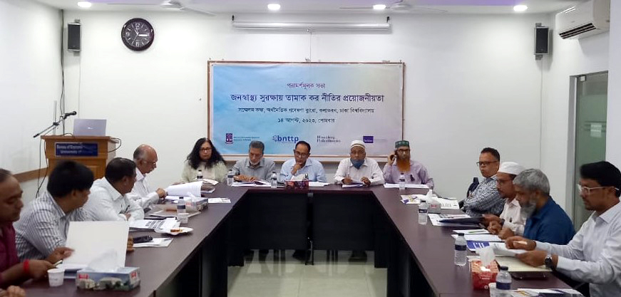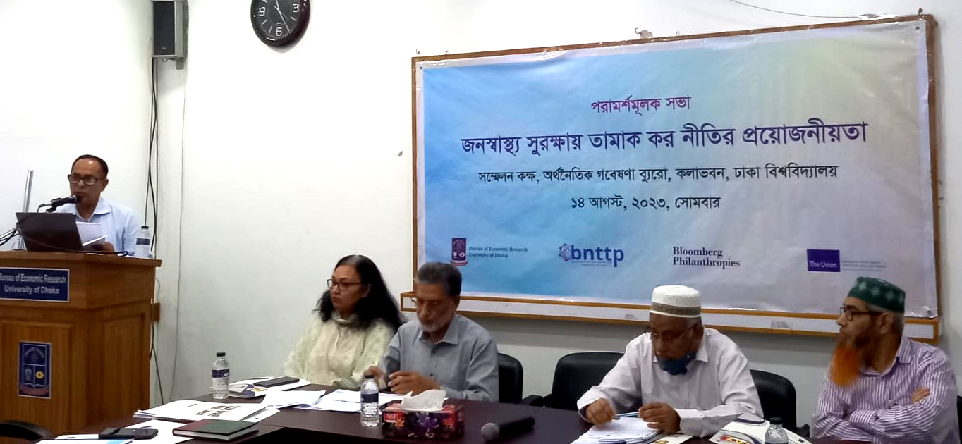 আজ ১৪ আগস্ট ২০২৩, সোমবার, সকাল ১০ টায় ঢাকা বিশ্ববিদ্যালয়ের অর্থনৈতিক গবেষণা ব্যুরোর সম্মেলন কক্ষে ‘জনস্বাস্থ্য সুরক্ষায় তামাক কর নীতির প্রয়োজনীয়তা’শীর্ষক পরামর্শমূলক সভায় তামাক নিয়ন্ত্রণ বিশেষজ্ঞরা এসব কথা বলেন। অর্থনৈতিক গবেষণা ব্যুরো (বিইআর) ও বাংলাদেশ নেটওয়ার্ক ফর টোব্যাকো ট্যাক্স পলিসি যৌথভাবে এ সভার আয়োজন করে।