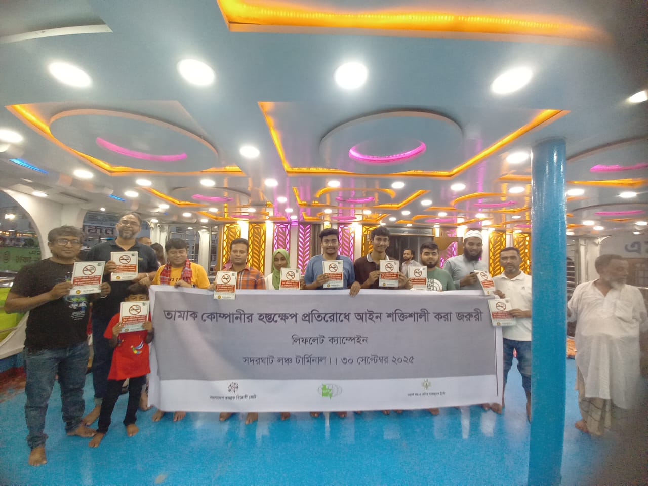 মঙ্গলবার (৩০সেপ্টেম্বর) বিকাল ৫ টায় বাংলাদেশ তামাক বিরোধী জোট, ডাস্ এবং ডাব্লিউবিবি ট্রাস্ট এর সম্মিলিত উদ্যোগে সদরঘাট লঞ্চ টার্মিনালে আয়োজিত “তামাক কোম্পানীর হস্তক্ষেপ প্রতিরোধে আইন শক্তিশালী করা জরুরী শীর্ষক একটি লিফলেট ক্যাম্পেইন অনুষ্ঠানের মাধ্যমে এই আহ্বান জানানো হয়।