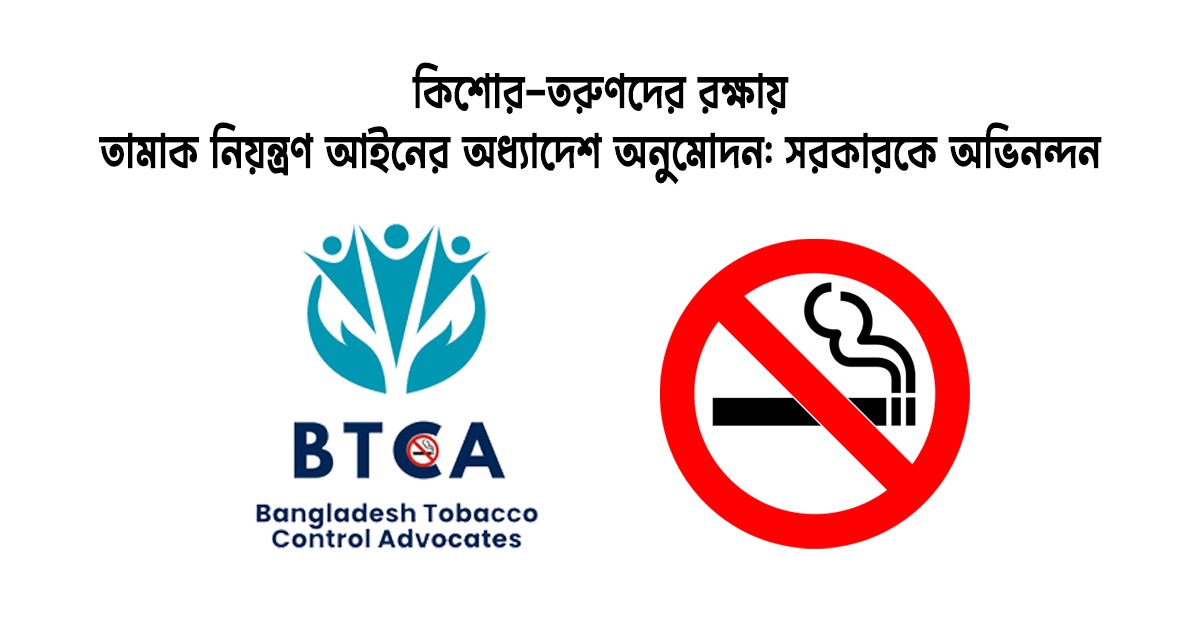 জনস্বাস্থ্য ও ভবিষ্যত প্রজন্মের স্বার্থে তামাক নিয়ন্ত্রণ আইনের (সংশোধন) অধ্যাদেশ, ২০২৫’ অনুমোদন করায় সরকারকে অভিনন্দন জানিয়েছেন দেশের জনস্বাস্থ্য বিশেষজ্ঞ ও তামাক নিয়ন্ত্রণ কর্মীবৃন্দ। ২০১৩ সালের পরে জনস্বার্থে এ আইনটির সংশোধনী দীর্ঘদিনের প্রত্যাশা ছিলো। তদুপরি, অনুমোদিত অধ্যাদেশে কিছু ক্ষেত্রে যেমন: খুচরা শলাক বিক্রয় নিষিদ্ধ, তামাক পণ্য বিক্রয়ে লাইসেন্সিং আরোপ এর মতো অতি গুরুত্বপূর্ণ বিষয়গুলো সন্নিবেশিত না করায় কিছুটা আশাহত ও ক্ষুব্ধ প্রুতিক্রিয়া জানানো হয়েছে। কার্যকর তামাক নিয়ন্ত্রণের স্বার্থে এ ব্যাপারে সরকার সরকার দ্রুততম সময়ে বিকল্প ব্যবস্থা গ্রহণ করবে বলে মনে করেন তারা।