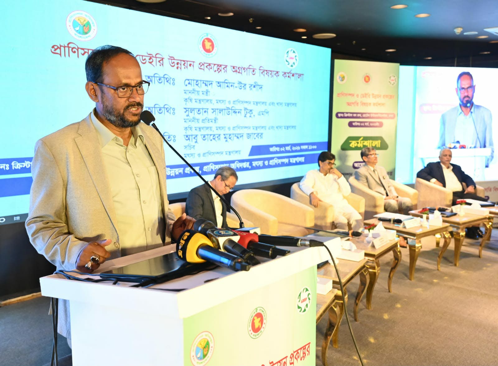 কর্মশালায় মৎস্য ও প্রাণিসম্পদ মন্ত্রণালয়ের সচিব আবু তাহের মুহাম্মদ জাবেরের সভাপতিত্ব করেন। মূল প্রবন্ধ উপস্থাপন করেন প্রাণিসম্পদ ও ডেইরি উন্নয়ন প্রকল্পের পরিচালক ড. মো. মোস্তফা কামাল, স্বাগত বক্তব্য ও মুক্ত আলোচনা পরিচালনা করেন প্রাণিসম্পদ অধিদপ্তরের মহাপরিচালক ড. মো. আবু সুফিয়ান। এসময় মন্ত্রণালয় ও অধিদপ্তরের কর্মকর্তা ঊর্ধ্বতন কর্মকর্তাবৃন্দ উপস্থিত ছিলেন।