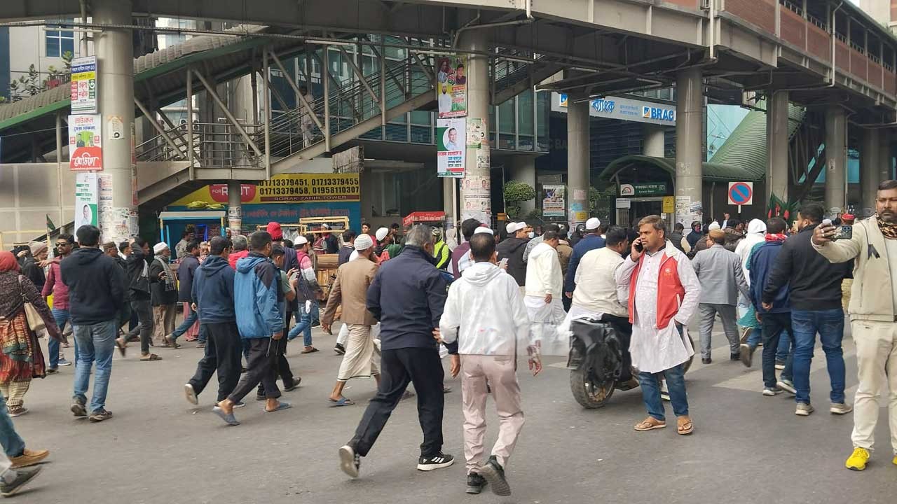 সকাল থেকেই কারওয়ান বাজার, ফার্মগেট, তেজগাঁও, বাংলামোটর ও আশপাশের এলাকায় মানুষের দীর্ঘ মিছিল দেখা গেছে। কেউ একা, কেউ দলবেঁধে, আবার কেউ পরিবার-পরিজন নিয়ে পায়ে হেঁটে জানাজাস্থলের দিকে যাচ্ছেন। কারও হাতে জাতীয় পতাকা, কারও হাতে দলীয় পতাকা—অনেকের চোখে জল, মুখে শোকের ছাপ।