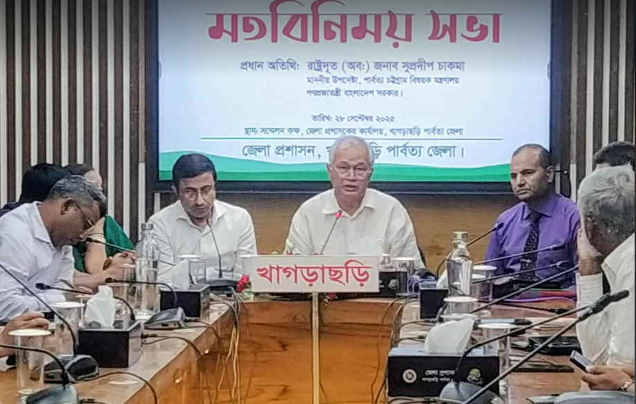 রবিবার (২৮ সেপ্টেম্বর) খাগড়াছড়ি জেলা প্রশাসক কার্যালয়ের সম্মেলন কক্ষে অনুষ্ঠিত এক মতবিনিময় সভায় উপদেষ্টা চাকমা এসব কথা বলেন। সভাটি সম্প্রতি ছাত্রী ধর্ষণের ঘটনাকে কেন্দ্র করে খাগড়াছড়িতে উদ্ভূত পরিস্থিতি নিয়ে আয়োজিত হয়।