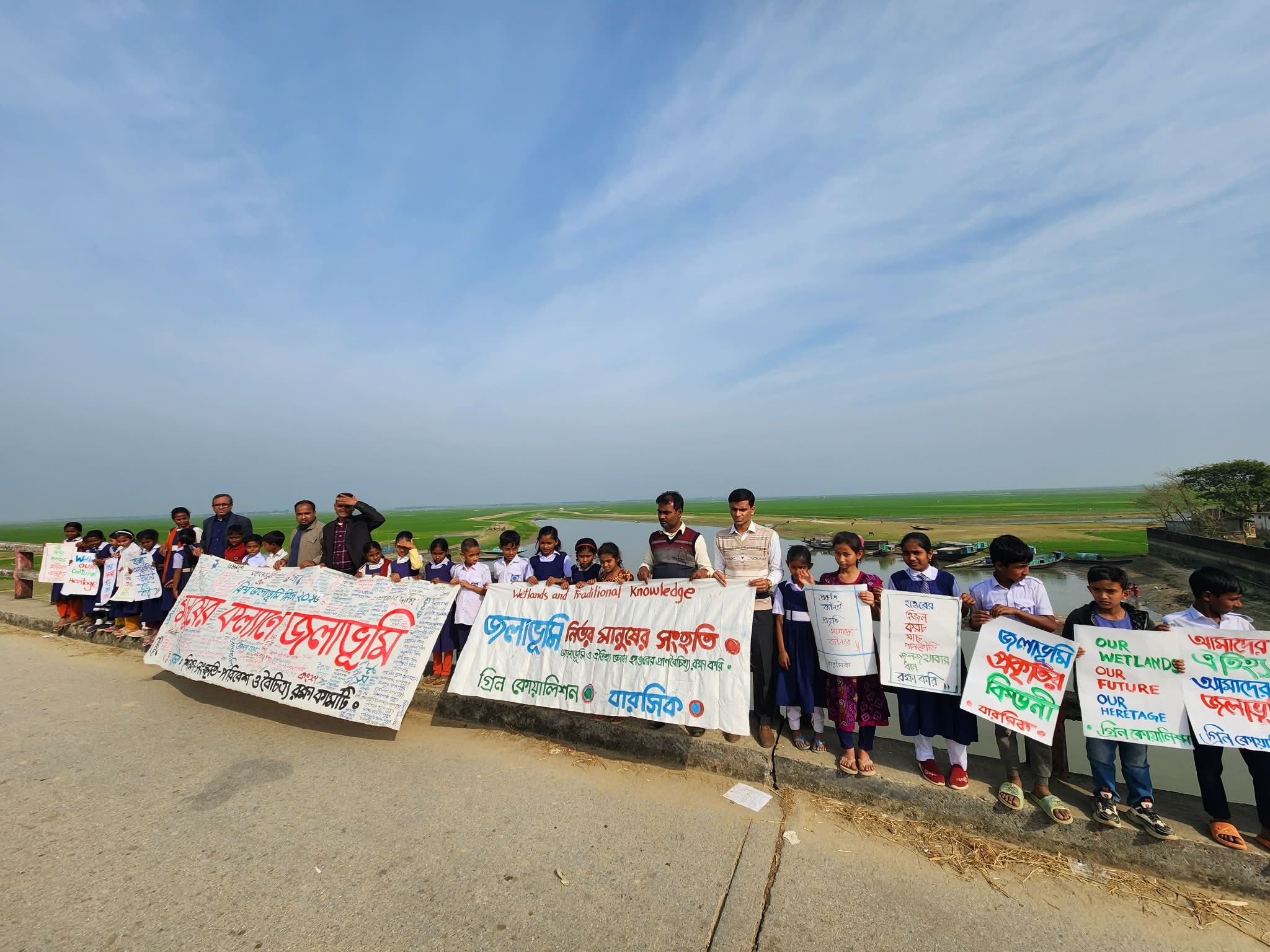 এবারের প্রতিপাদ্য ছিল- “জলাভূমি ও ঐতিহ্যগত জ্ঞান: আমাদের সাংস্কৃতিক ঐতিহ্য উদযাপন”। অংশগ্রহণকারীরা হাওর অঞ্চলের নদী, খাল, বিল ও জলাভূমি সুরক্ষার দাবিতে ব্যানার, ফেস্টুন ও স্লোগান লিখে ‘প্রকৃতিবন্ধন’ কর্মসূচি পালন করেন। ফেস্টুনে ছিল- “জলাভূমি প্রকৃতির কিডনি”, “জলাভূমি বাঁচাই, ঐতিহ্য রক্ষা করি”, “নদী-খাল-বিল-হাওর আমাদের পরিচয়”, “প্রথাগত জ্ঞানে জলাভূমি রক্ষা করি”, “হাওরের পরিবেশ বাঁচাই, মাছ রক্ষা করি”।