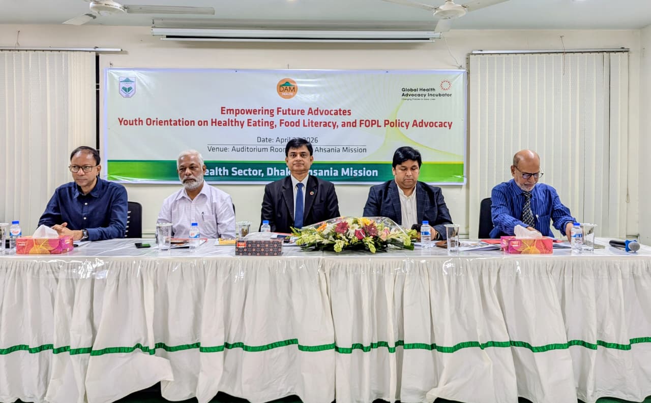তরুণদের সম্পৃক্ততায় বাংলাদেশে স্বাস্থ্যকর খাদ্যাভ্যাস প্রচার এবং প্যাকেটজাত খাবারের পুষ্টি তথ্য সম্পর্কে সচেতনতা বৃদ্ধির লক্ষ্যে ঢাকা আহছানিয়া মিশন আয়োজিত “ভবিষ্যতের তরুণদের ক্ষমতায়ন: সুস্থ খাদ্যাভ্যাস, প্যাকেটজাত খাবারের লেবেলিং সম্পর্কে ধারনা এবং ফ্রন্ট-অফ-প্যাকেজ লেবেলিং (এফওপিএল) নীতি সমর্থন” শীর্ষক দিনব্যাপী তরুণদের ওরিয়েন্টেশন অনুষ্ঠিত হয়েছে।