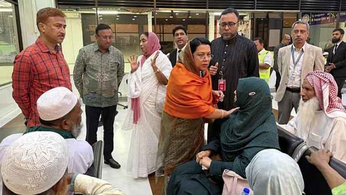 ঢাকার হযরত শাহজালাল আন্তর্জাতিক বিমানবন্দরে শনিবার (২৮ ফেব্রুয়ারি) সন্ধ্যায় মধ্যপ্রাচ্যগামী যাত্রীদের সঙ্গে দেখা করতে যান বেসামরিক বিমান পরিবহন ও পর্যটনমন্ত্রী আফরোজা খানম রিতা এবং প্রধানমন্ত্রীর উপদেষ্টা হুমায়ুন কবির। তারা টার্মিনালের বিভিন্ন অংশ ঘুরে যাত্রীদের সঙ্গে কথা বলেন এবং চলমান পরিস্থিতি সম্পর্কে খোঁজখবর নেন।