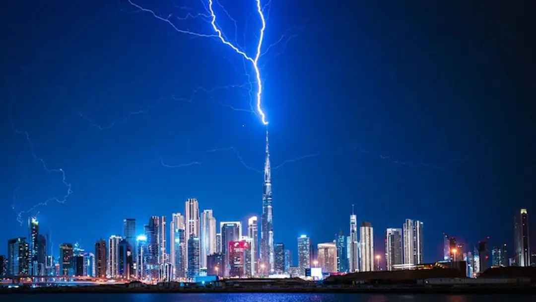 ২০১০ সালে নির্মিত ১৬৩ তলাবিশিষ্ট বুর্জ খলিফার উচ্চতা প্রায় ২,৭৭২ ফুট। আশপাশে এত উঁচু কোনো স্থাপনা না থাকায় ঝড়ের সময় স্বাভাবিকভাবেই বজ্রপাতের আঘাত ভবনটিতে আসে।