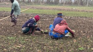 রাজবাড়ীতে কনকনে শীতের মধ্যেও পেঁয়াজ বুনছেন কৃষকরা
