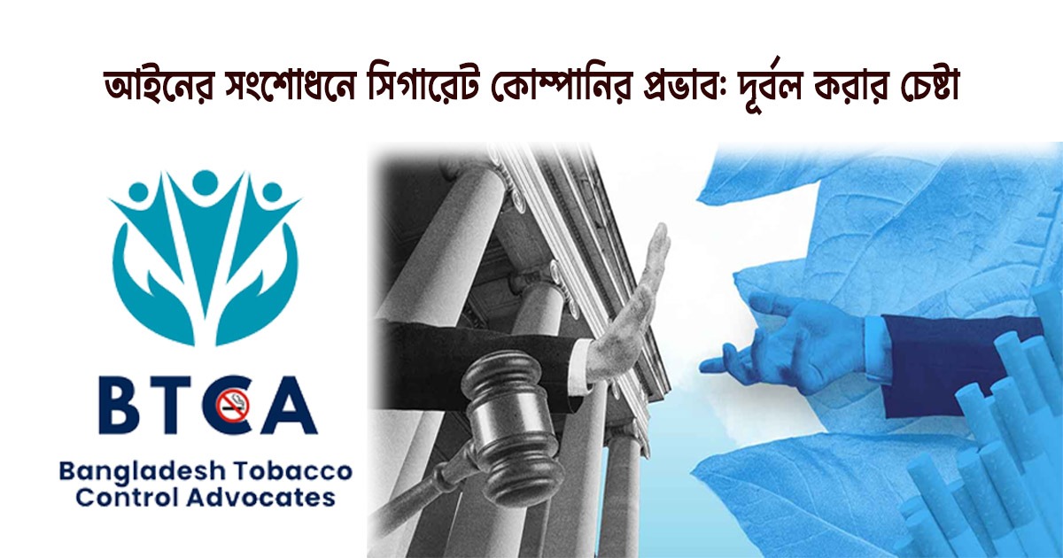 বাংলাদেশ সরকার ধূমপান ও তামাকজাত দ্রব্য ব্যবহার (নিয়ন্ত্রণ) আইন শক্তিশালী করার উদ্যোগ নেওয়ায় সরকারের প্রতি আন্তরিক কৃতজ্ঞতা। কিন্তু বিষ্ময়ের সাথে লক্ষ্য করা যাচ্ছে, গত ০৯ ডিসেম্বর ২০২৪ অধ্যাদেশ সংশোধনে একটি পর্যালোচনা কমিটি গঠন করা হলেও বিগত এক বছরে এ অধ্যাদেশ আইন প্রণয়নে কোন কাঙ্ঘিত অগ্রগতি হয়নি। অথচ, বিগত এক বছরে প্রায় ৬০টি অধ্যাদেশ প্রণয়ন হয়েছে। অসংখ্য মানুষের জীবন বাঁচাতে একটি অধ্যাদেশ প্রণয়নে এত অবহেলিত তা সত্যিই বিস্ময়ের! যার পিছনে রয়েছে সিগারেট কোম্পানিগুলোর ‍সুপষ্ট প্রভাব। কতিপয় মন্ত্রণালয় ও বিভাগ বিশেষ করে অর্থ, বাণিজ্য, শিল্প, রাজস্ব বোর্ড সিগারেট কোম্পানিগুলোকে ছাড় দিতে রাজস্বসহ নানা যুক্তি তুলে ধরে থাকে অভিযোগ করেছেন বিশিষ্টজনেরা।