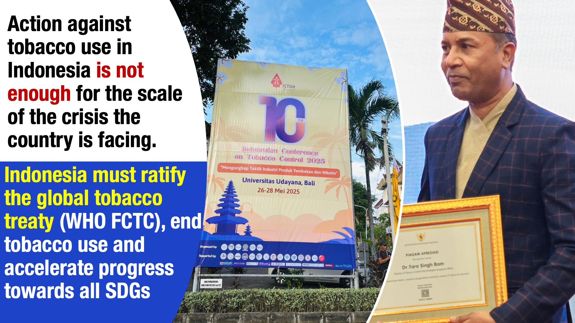 But this is not enough. Dr Bam rightly calls upon all levels of government, parliamentarians, and stakeholders to act decisively to align the local tobacco control efforts with global standards by committing to the ratification of the WHO FCTC. He acknowledges the Presidential Regulation No. 28 of 2024 (that covers a wide range of healthcare issues, including regulations on tobacco products and steps against electronic cigarettes) as a step forward in the right direction, but thinks it is not enough for the scale of the crisis the country is facing.