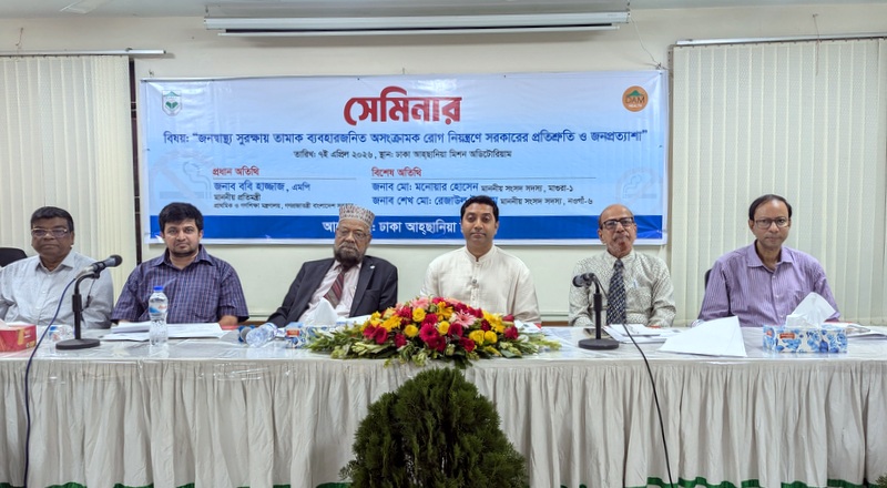 These remarks were made by State Minister for Primary and Mass Education, Bobby Hajjaj, MP, as the chief guest at a seminar titled “Government Commitments and Public Expectations in Controlling Tobacco-Related Non-Communicable Diseases for Public Health Protection”, organized by Dhaka Ahsania Mission in Dhanmondi, Dhaka, on Tuesday (April 7, 2026).